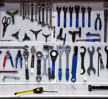Organização funcional de ferramentas e espaços para manter tudo acessível e pronto para uso.